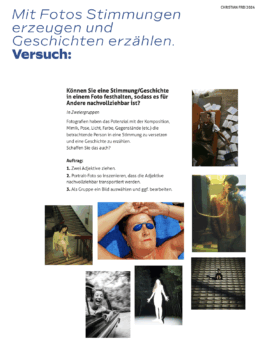 Als Nächstes lernen sie, Portraitfotos zu inszenieren. Der Fokus liegt dabei auf den Grundregeln der Komposition und darauf, mit welchen Tricks sie Blicke führen und eine ausgewogene Bildkomposition erreichen können. Gleichzeitig analysieren und reflektieren wir, wie durch Inszenierung Stimmungen entstehen und Geschichten erzählt werden.